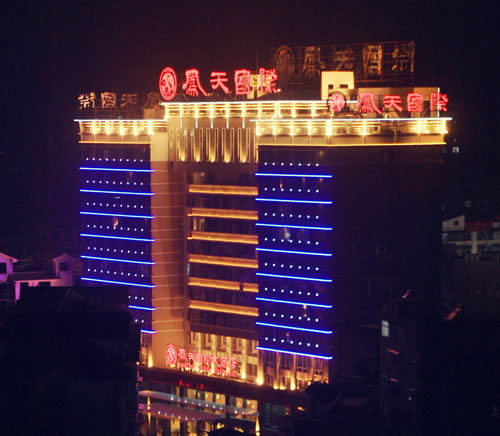 鳳凰鳳天國際大酒店總投資2.68億元,13層至尊高度?偯娣e30000多平方米,氣宇軒華。共有300余間豪華客房。地下停車場,會務(wù)中心,健身中心,中西餐廳,咖啡廳,等配套設(shè)施一應(yīng)俱全。集會展、旅游、休閑娛樂于一體,卓爾不凡,盡顯大家風(fēng)范。宴會廳是目前鳳凰最大,可同時容納1000人就餐。