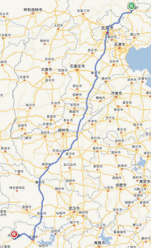 承德去張家界自駕車線路圖全程高速):