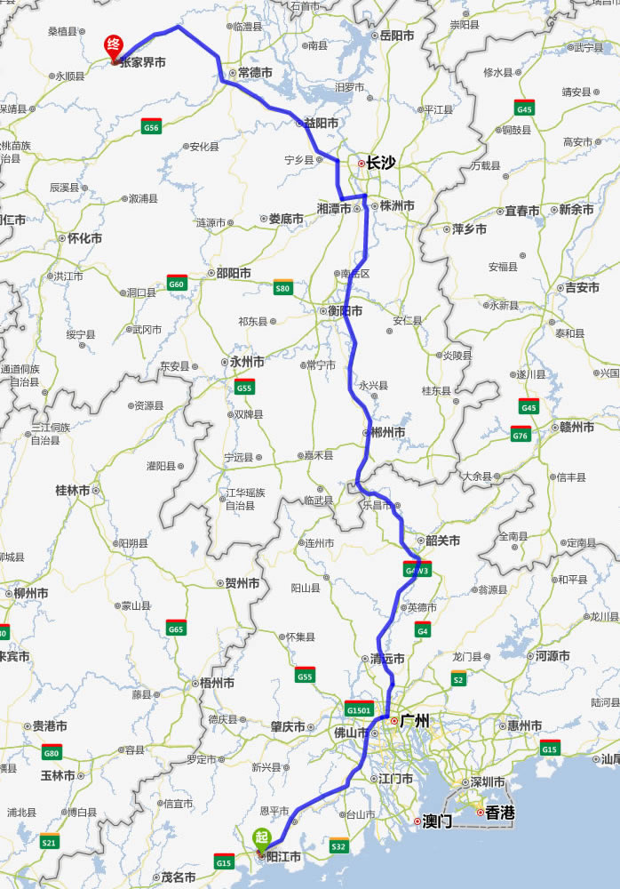 現(xiàn)在位置:張家界旅行社->交通指南->自駕車路線 -> 陽(yáng)江到張家界旅游自駕車線路,陽(yáng)江去張家界自己開車要多長(zhǎng)時(shí)間,有多少公里