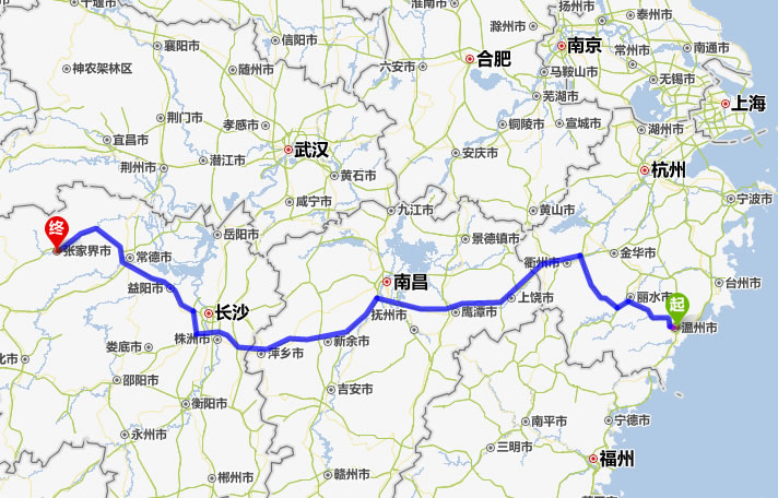 溫州去張家界自駕車自助游線路圖全程高速):