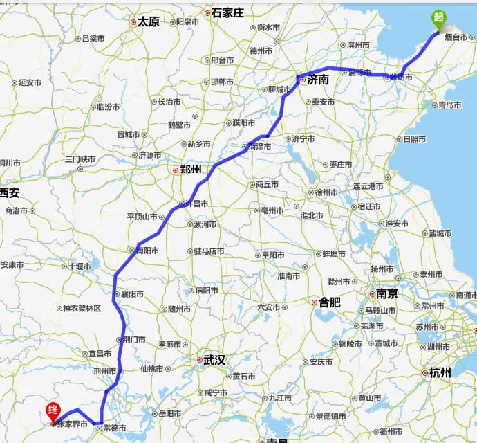 龍口去張家界自駕車自助游線路圖全程高速):