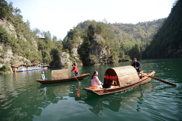 “在高峽平湖中,我們看到了張家界山水的純凈,也感受了這里人文的多彩!币慌鷣碜蕴﹪(guó)的華裔游客當(dāng)天游覽景區(qū)后開心地說。在他們眼中,寶峰湖的春天風(fēng)景獨(dú)好,四周山巒山花競(jìng)放,五顏六色絢麗無比,就連湖面倒影也十分迷人。而導(dǎo)游員熱情洋溢的講解和山歌船飛出的原生態(tài)民歌,以及烏篷船上身著民族服裝的阿哥阿妹,都是他們張家界之旅不容錯(cuò)過的人文風(fēng)景。
