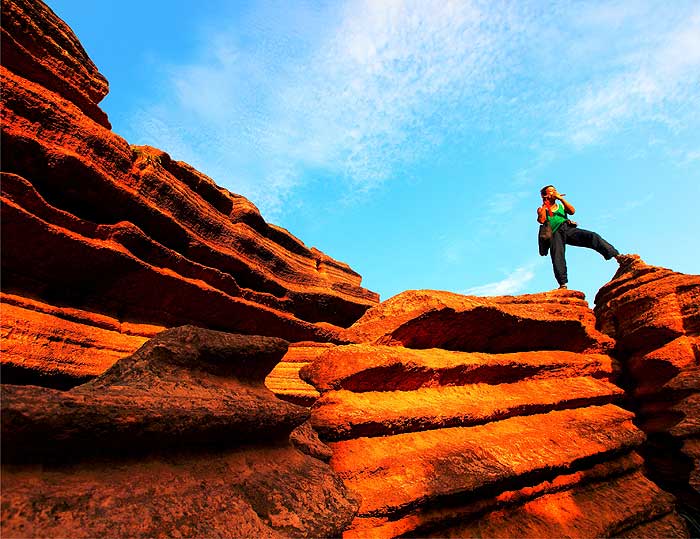 下 午:中餐后乘車前往中國最紅的景區(qū)--湘西古丈紅石林景區(qū)(門票148元/人已含,游覽時間約2小時),游覽作為我國唯一紅色碳酸鹽石林,國家AAAA級景區(qū),紅石林國家地質(zhì)公園被譽(yù)為“武陵第一奇觀”。走進(jìn)紅石林,就如同走進(jìn)一座迷幻古堡:游揚子古海,觀奧陶海底石峰之俊美,觸古生物化石,悟天、地、人池三位一體,過險峭野豬峽、小龍峽、虎跳峽、鴛鴦峽,走幸運門,感冰石夫妻之堅貞,嘆絕壁天坑之兇險,仰千年古木之雄偉……景區(qū)融紅、秀、峻、奇、絕、古于一身,進(jìn)入石林區(qū),猶如邁入了一座大型的天然石景雕塑博物館,給人帶來了美的享受,赴鳳凰古城(車程約2小時),抵達(dá)古城后安排入住酒店休息,之后可自由活動,欣賞鳳凰夜景!