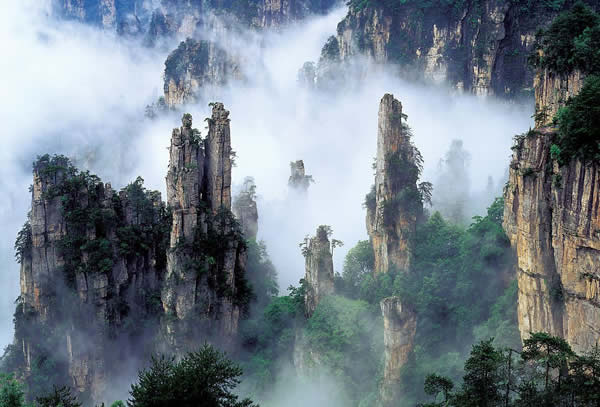 上 午: 遠觀霧色百丈峽、踏入神秘的潘多拉世界,游覽張家界核心景區(qū)(門票已含)精品游覽線——【袁家界景區(qū)】(乘百龍?zhí)焯萆闲,門票72元/人已含):袁家界風(fēng)景以雄、奇、險、峻著稱,在十多華里的環(huán)山游道上,沿途景色美不勝數(shù),其中可觀賞到:電影《阿凡達》中“哈利路亞山”原型“乾坤柱”、迄今為止發(fā)現(xiàn)落差最高的天然石橋——天下第一橋(橋墩絕對高度354米)、九天玄梯、八卦圖、猿人望月、拜仙臺、迷魂臺、后花園等景點;乘景區(qū)環(huán)保車(約40分鐘)前往游覽峰林奇觀--【天子山】:天子山被譽為峰林之王,千座山峰兀立云霧中、風(fēng)光旖旎、景色秀美,游覽天子閣、西海石林、御筆峰、仙女獻花、賀龍公園、石船出海、賀龍銅像等景點。