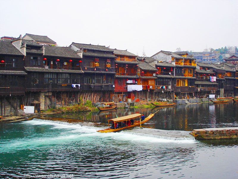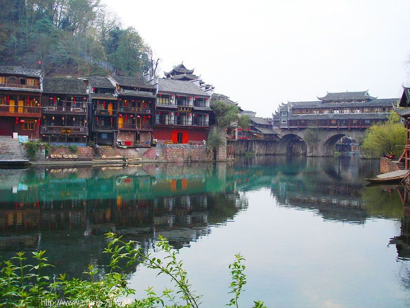 【鳳凰古城位于沱江之畔、群山環(huán)抱、關(guān)隘雄奇、碧綠的沱江依著城墻緩緩流淌,疊翠的南華山麓倒映江中,江中漁舟游船數(shù)點(diǎn),山間暮鼓晨鐘兼鳴,懸崖上的吊腳樓輕煙裊裊,碼頭邊的浣紗姑笑聲朗朗,兩岸已有數(shù)百年歷史的吊腳樓更是別有一番風(fēng)味;順?biāo)麓┻^(guò)虹橋一幅江南水鄉(xiāng)的畫(huà)面便展現(xiàn)于眼前--萬(wàn)壽宮、萬(wàn)名塔、奪翠樓……一種遠(yuǎn)離塵世的感覺(jué)悠然而生;鳳凰--猶如“一幅濃墨淺彩的中國(guó)山水畫(huà)”】(游覽時(shí)間約3小時(shí)左右)